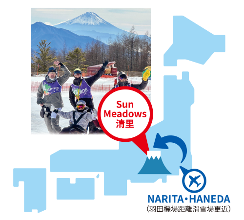 At Wheelchair Ski Japan, we offer wheelchair ski lessons at Sun Meadows Kiyosato Ski Resort (Yamanashi Prefecture) from December (resort opening day) through the end of March.